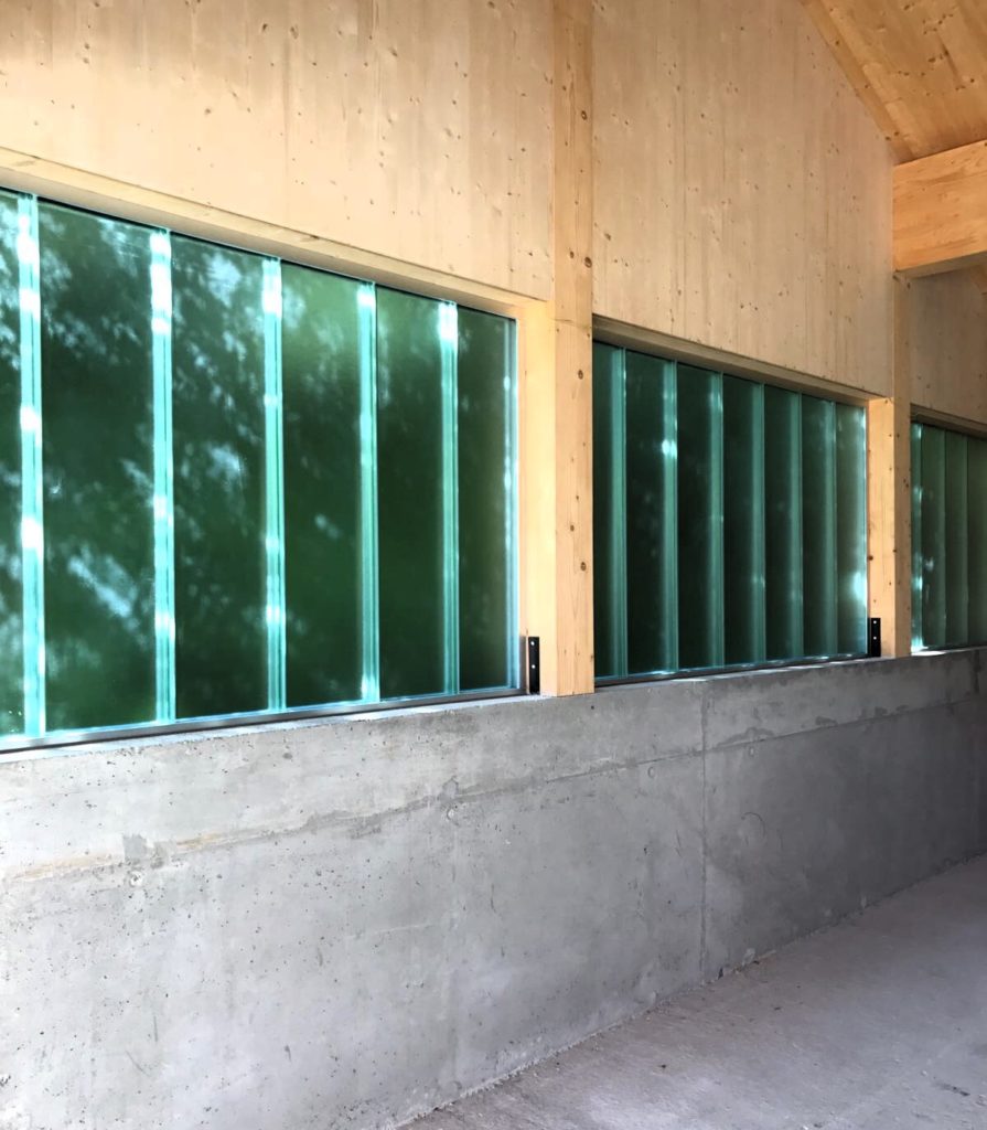 Le verre profilé peut se monter en simple ou double paroi avec une structure métallique de fixation légère, ce qui en fait un concept de surface vitrée bon marché idéal pour des locaux nécessitant peu d’apport thermique et lumineux. C’est également un verre très simple d’entretien.
